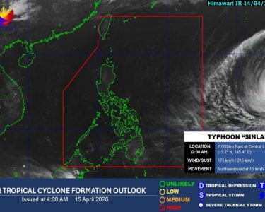 In its 8 a.m. bulletin, the Philippine Atmospheric, Geophysical and Astronomical Services Administration (Pagasa) reported that as of 7 a.m., the eye of Nando was located 180 kilometers east of Calayan, Cagayan.